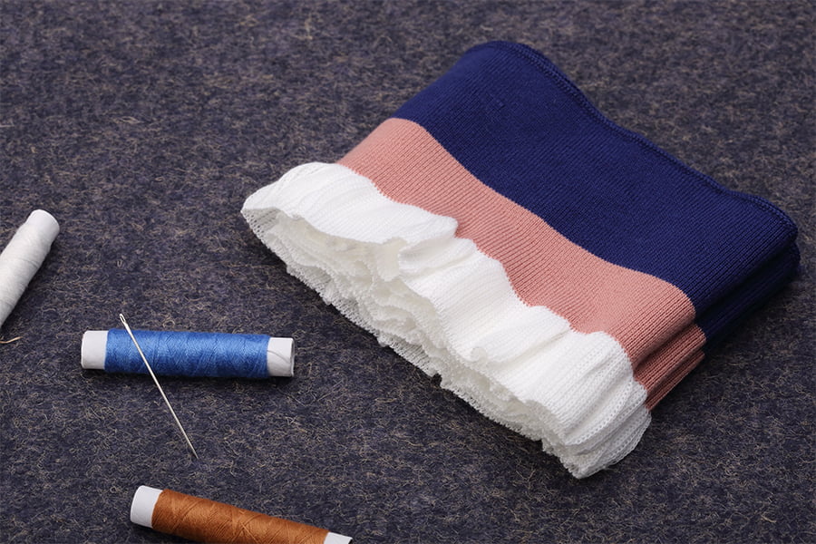 پس از مخلوط شدن الیاف، آنها را با استفاده از ماشین های ریسندگی به صورت نخ در می آورند. نخ ها سپس به ماشین های بافندگی دایره ای وارد می شوند و در آنجا با استفاده از الگوی بافندگی آجدار به پارچه گره می خورند. در طول فرآیند بافندگی، پارچه کشیده و دستکاری می شود تا بافت آجدار مشخصی ایجاد شود. کشش دستگاه بافندگی را می توان برای کنترل عرض و عمق دنده ها تنظیم کرد و امکان سفارشی سازی ظاهر پارچه را فراهم کرد.