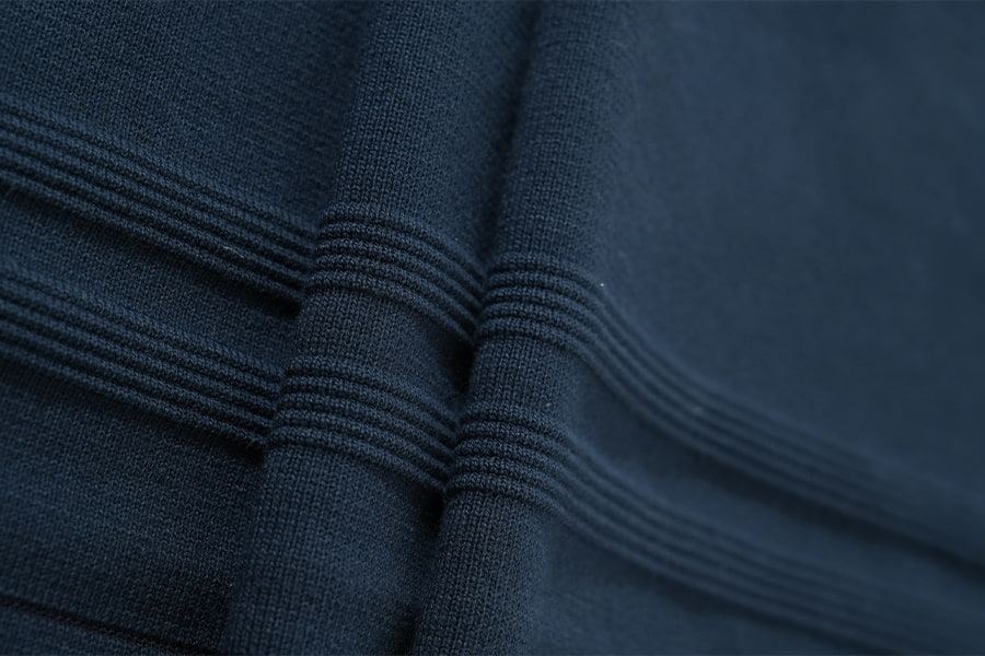 2. بافتنی دنده پلی استر : یک مارول مدرن بر خلاف جذابیت بی انتها پارچه دنده نخی، بافت دنده پلی استر نمایانگر شگفتی معاصر مهندسی نساجی است که با انعطاف پذیری، عملکرد و تطبیق پذیری مشخص می شود. این پارچه بافتنی که از الیاف پلی استر مصنوعی تشکیل شده است، دارای بافت آجدار مشخصی است که شبیه همتای پنبه ای خود است، البته با استحکام و دوام بیشتر. بافتنی دنده پلی استر تلفیق سبک و عملکرد را نشان می دهد و با کارایی بی نظیر خواسته های سبک زندگی مدرن را برآورده می کند.